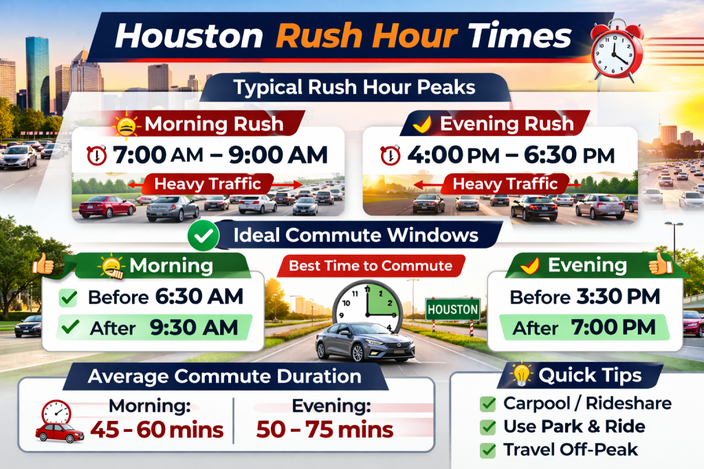 Using Park & Ride, rideshare, or structured commute services like SafeTrip strategically around these hours can significantly improve travel time , especially on notorious corridors like I-45 or the 610 Loop.